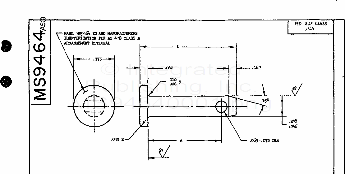 MS9464 Pin, Straight, Headed- .248 Diameter, Ms 5735 (Asg) (S/S By Sae-As9464)